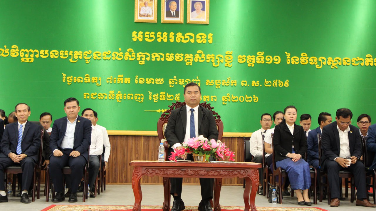 វិទ្យាស្ថានជាតិអប់រំ៖ ព្រឹកថ្ងៃអាទិត្យ ៧កើត ខែមាឃ ឆ្នាំម្សាញ់ សប្តស័ក ព.ស. ២៥៦៩ ត្រូវនឹងថ្ងៃទី២៥ ខែមករា ឆ្នាំ២០២៦ វេលាម៉ោង៨ព្រឹក នៅវិទ្យាស្ថានជាតិអប់រំ មានប្រារព្ធពិធីប្រគល់វិញ្ញាបនបត្រជូនដល់សិក្ខាកាមវគ្គសិក្សាខ្លី វគ្គទី១១ លើមុខជំនាញចំនួន៦ ក្រោមអធិបតីភាព ឯកឧត្តមបណ្ឌិត សៀង សុវណ្ណា នាយកវិទ្យាស្ថានជាតិអប់រំ។